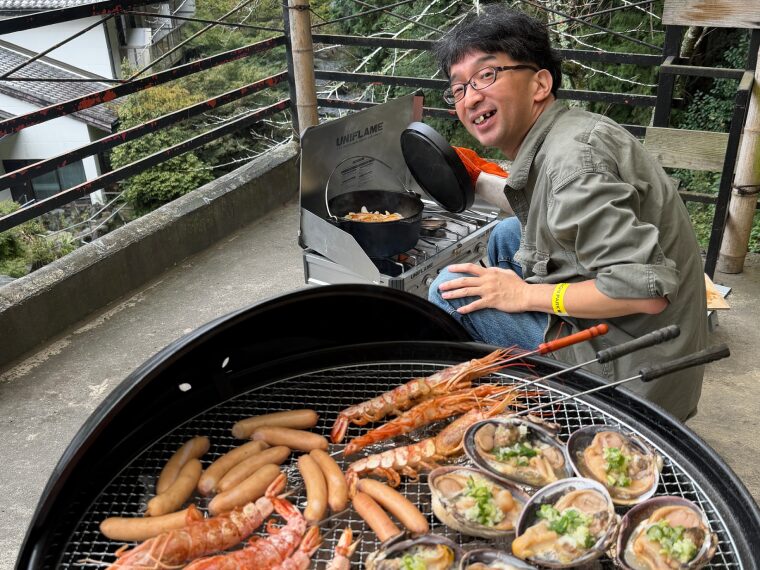 というわけで、ハロウィン前日の懇親会BBQで大活躍だったカレッジナンバーワンのアウトドア男“Mr.たき火”こと竹田先生です!