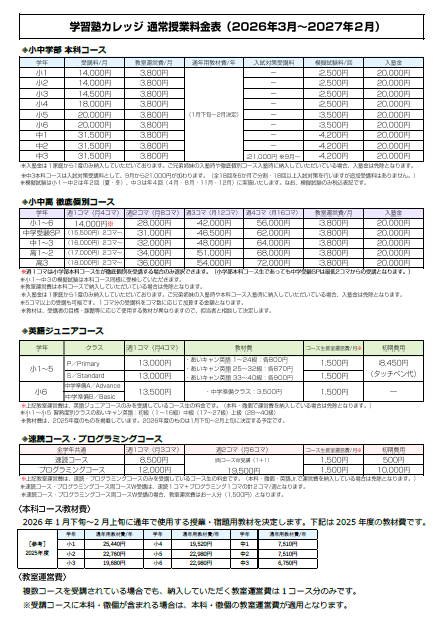 学習塾カレッジ冬期講習2025 冬期講習は本科コースを除き、普段受講していないコースもお…詳しく見る